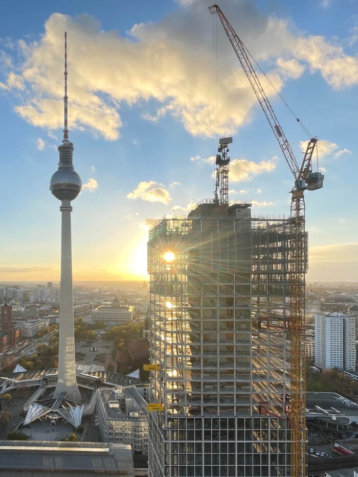 | Hochhaus mit Riegelbau am Berliner Alexanderplatz, integriert in den teilrückgebauten Gallaria Kaufhof | |||